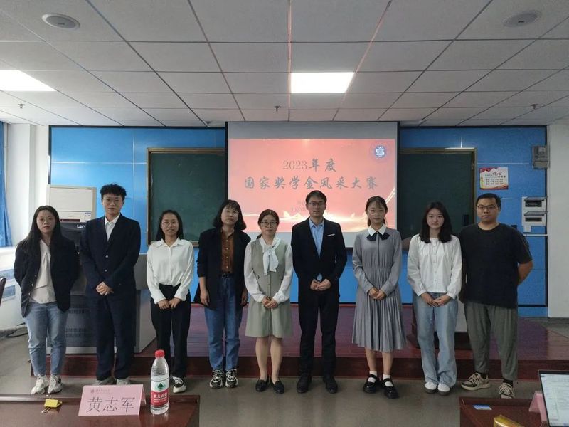 为了激励大学生勤奋学习、努力进取,在德、智、体、美等方面全面发展,培养、引导和规范大学生的思想素质和政治观念,从而为国家和社会培养出更优秀的人才。yl23455永利官网外国语学院于2023年10月12日下午2时30分-4时30分在人文楼21B404开展国家奖学金风采大赛活动,参加本次活动的有:外国语学院教师殷丹老师,外国语学院教师汪俊老师,外国语学院辅导员黄志军、何俊生、朱玉琳老师,7位国家奖学金候选人,以及外院学生代表。