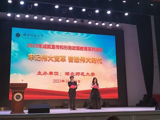 值此五十周年校庆之际,为了大力弘扬无私奉献、尚诚厚德的精神,全方位、多层次宣传道德模范,营造良好的道德氛围,推进我院精神文明建设,10月19日下午4时,外国语学院于湖师大礼堂举行了以“喜迎建校五十载,尚诚厚德树新风”为主题的道德讲堂活动。本次道德讲堂的听众为外国语学院师生代表。本次活动由余熙爱和邓博图主持。