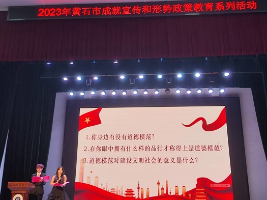活动伊始,全体听众在主持人的引导下对道德讲堂主题问题进行自我反省。活动中,同学们通过聆听歌曲《奔跑》和诗朗诵《孩子们写给张桂梅校长的诗》、观看《习总书记的教书育人观》以及优秀学生代表分享经验后与现场互动谈感悟等多种方式进行了道德感悟与学习。在许承诺环节,全体师生起立,郑重许下诺言——争做新时代四有青年。最后,主持人呼吁大家结束后做一件善事。