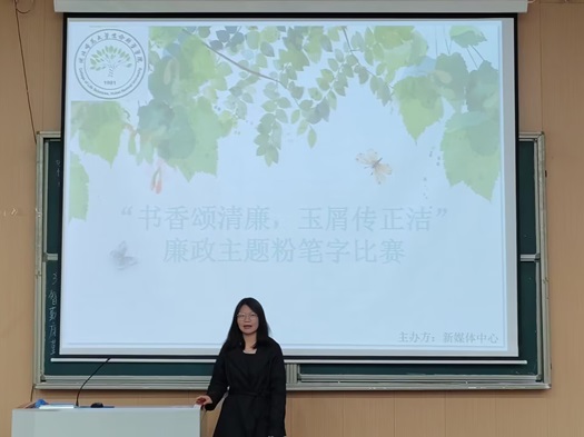 为促进师范生专业发展,加深学生对廉洁文化的理解,10月22日晚,由生命科学学院新媒体中心主办的廉政主题粉笔字书写比赛于生科院8J21顺利举办。比赛邀请到的评委有生命科学学院党委副书记李文静老师,辅导员覃杰老师,yl23455永利官网书法协会会长段雪、教学部吴强。