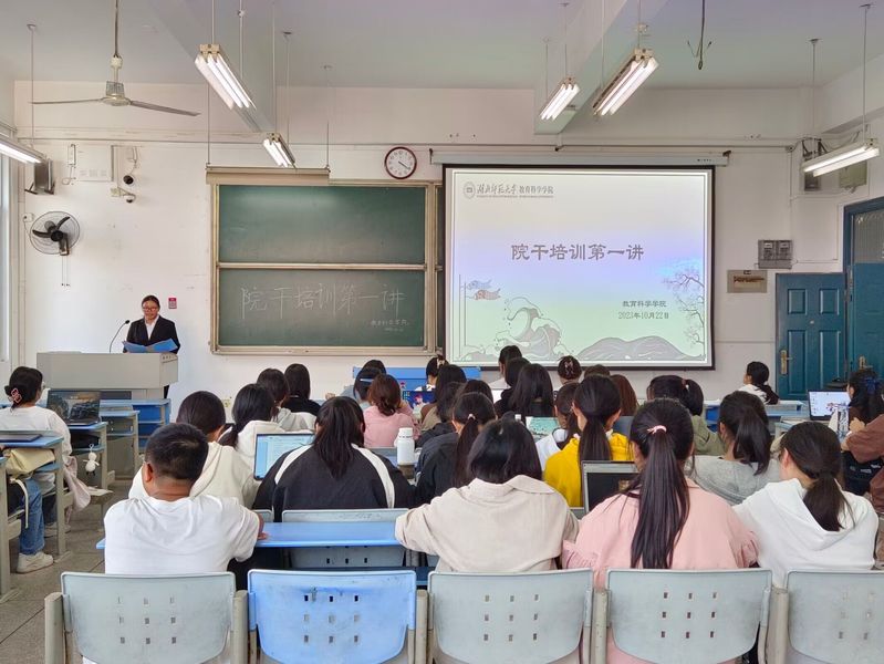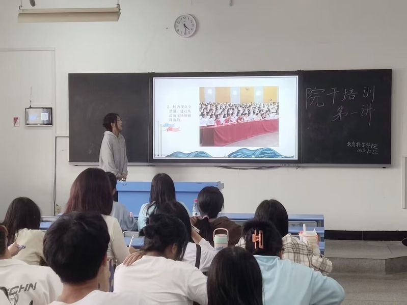 为了让干事们进一步了解三大组织工作、熟悉所属部门的工作流程、提升综合素质和工作能力,教育科学学院于10月22日下午四点二十在科技大楼9704、9710举办了院干培训第一讲。其中,9710为主会场,9704为副会场。教育科学学院全体学生干部、见习干事及23级本科、21级专升本班级负责人参加了本次培训。