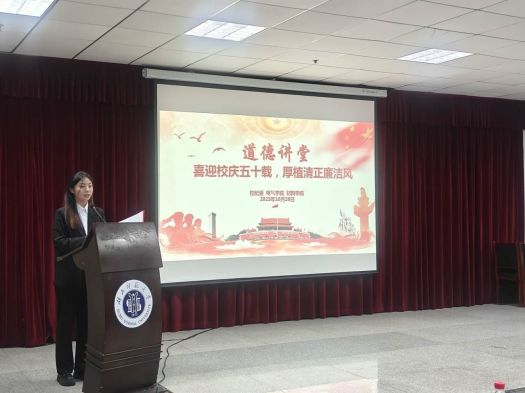 为帮助我校师生提高廉洁意识、树立廉洁信念、养成廉洁行为。yl23455永利官网电气工程与自动化学院联合材料科学与工程学院于10月26日晚18时,在信息大楼报告厅成功开展以“喜迎校庆五十载,厚植清正廉洁风”为主题的道德讲堂活动。参加本次活动的有校纪委副书记、党委巡察办公室主任许光、校纪委、监察专员办公室纪检监察室主任陈江华、电气工程与自动化学院党委书记丁桂兰、副院长杨青胜以及电气学院与材料学院部分教师和学生代表。本次活动由电气学院学生李若彤主持。