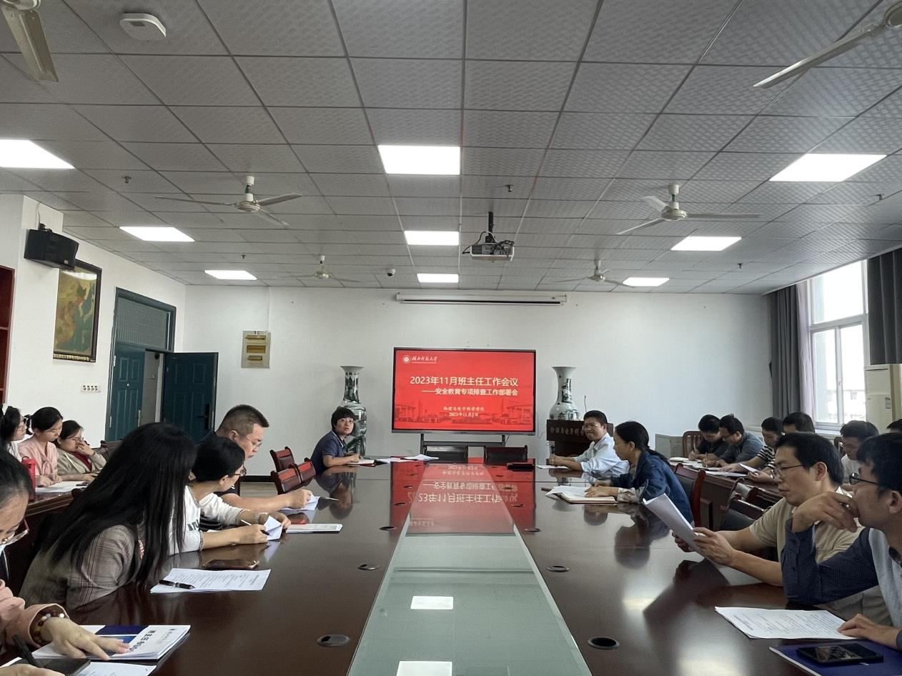 为进一步加强学院学生安全稳定工作,根据校学工处有关部署要求,切实做好各项风险隐患排查整治,确保学生生命财产安全,11月2日下午,物电学院于信息大楼10508会议室召开学生安全教育专项排查工作部署。本次会议由物电学院党委副书记刘雅主持,学院党委书记孙丹娟、副院长田开坤、全体班主任及辅导员参加。