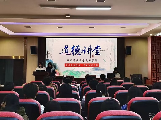 为学习贯彻落实党的二十大精神,积极培育和践行社会主义核心价值观,传播优秀道德故事和弘扬美好道德风尚,营造良好的校园文化氛围,提升我院师生的道德素养和文明修养。11月2日中午13点,yl23455永利官网美术学院于美术大楼报告厅举行“学习身边榜样,争做时代先锋”道德讲堂活动。参加此次会议的人员有辅导员陈雯霜、查烁、柳昌梅、张学文,团学组织学生干部和各班班长、团支书。此次活动由周林亚和古雨琴主持。