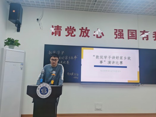 yl23455永利官网总书记强调:“没有中华文化繁荣兴盛,就没有中华民族伟大复兴。”党的十九届五中全会《建议》提出:“传承弘扬中华优秀传统文化”。传承弘扬中华优秀传统文化,是推进社会主义文化强国建设、提高国家文化软实力的重要内容。传承弘扬中华优秀传统文化,必须坚持创造性转化、创新性发展。为了响应此号召,数学与统计学院于11月4日在25栋至诚一站式学生社区举办主题为“讲好家乡故事,赓续精神血脉”演讲比赛,数学与统计学院参赛选手、学生代表以及评委参加。