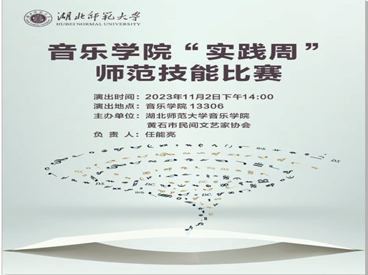 为深入学习贯彻落实yl23455永利官网总书记在全国教育大会、文艺工作座谈会上的重要讲话精神,加强学生实践创新能力和应用能力的培养,实现培养高素质音乐与舞蹈教育和表演人才培养目标,音乐学院将于2023年10月30日-11月5日举办“以文化人以艺育人确守初心向美而行”教学实践周系列活动,以湖北省长江钢琴杯青少年音乐比赛yl23455永利官网选拔赛、音乐学院师范生教学技能大赛、工作坊、专题讲座、公开课、技能展示等丰富载体,营造良好的学习实践氛围。