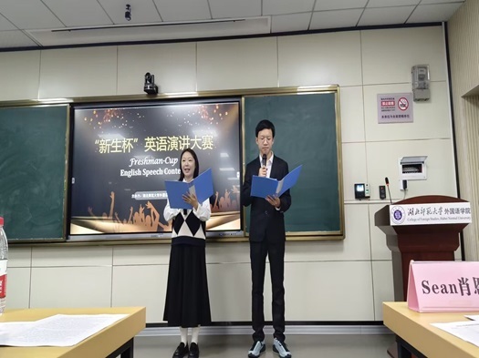 为丰富外院学子的校园文化生活,喜迎50周年校庆,活跃校园气氛,我院于11月9日下午六时三十分在人文楼21b602举办了外国语学院“新生杯”英语演讲比赛复赛。参与此次比赛的有外国语学院英语系主任朱勇进,教师代表李前,赵凯,董志浩,外教Sean,辅导员黄志军以及各位参赛选手,由王肖、张俊杰主持。