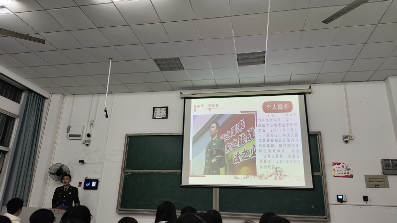 为拓展学生对国防事业及军营、军事的了解,增强学生的爱国情怀和国防意识,城市与环境学院于12月4日晚19时在科技大楼9102和9104同时开展“军营故事我来讲”主题宣讲会。