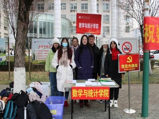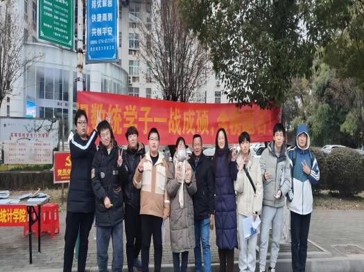 为做好考研学生的后勤保障工作,数学与统计学院在教育大楼和科技大楼外设置“温暖送考点”。12月23日早上7时30分,数统学院党委书记罗四清、党委副书记袁曼、毕业班班主任以及辅导员前往送考,为同学们送去慰问和祝福。