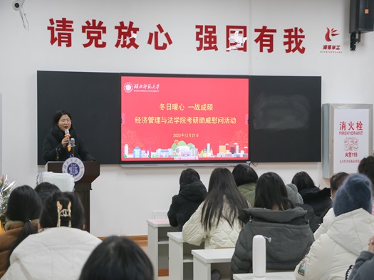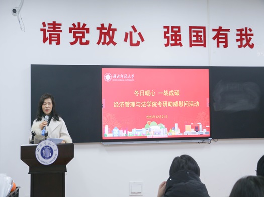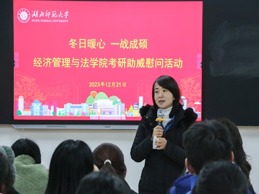 为了疏解同学们研究生备考压力,为考生送去温暖与祝福,12月21日下午,经济管理与法学院在至诚“一站式”社区举办“暖心冬日 一战成硕”考研助威慰问暨考前压力疏解活动。学院党委副书记侯彩云、副院长沈燕,学校心理健康教育与咨询中心李美华,班主任、辅导员及2024届考研学生代表参加活动。本次活动由辅导员崔梦川主持。