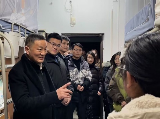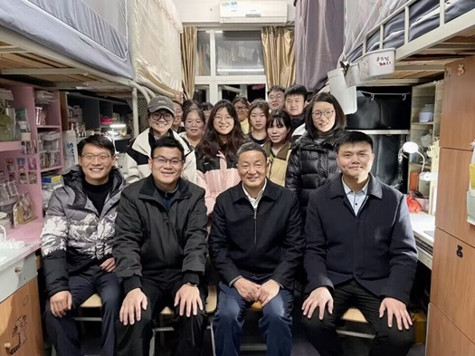 在学生宿舍,雷儒金校长与同学们进行了亲切的交谈,询问同学们的期末复习情况,了解同学们目前在学习、生活中遇到的困难,实时为同学们答疑解惑、解决困难,并提醒同学们劳逸结合,注重德智体美劳全面发展。最后他亲切地嘱咐到:“同学们在生活学习中遇到任何困难和问题及时向书记和辅导员反馈。”徐明波书记为同学们送上了新年祝福,并且勉励同学们:“要趁着青春勇敢拼搏,以奋斗之青春担当民族复兴重任”。刘懿钊副书记在走访过程中再三叮嘱学生们要注意保暖、及时增添衣物、预防流感;主动加强与老师们的沟通,积极提出合理诉求;期末考试在即,要合理安排时间,科学高效备考,同时要注意劳逸结合,保持体育锻炼,以良好的状态应对考试。