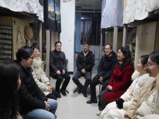 新学期,新展望,新气象。为及时了解学生返校情况与思想动态,做好对学生的教育、管理、服务工作,3月3日晚,由校党委副书记马列军带队,学工部副部长熊英,文学院党委书记车录彬、院长李治平、院党委副书记郭笑笑、副院长彭江浩以及研究生导师、班主任、辅导员一同深入学生宿舍开展走访慰问活动。