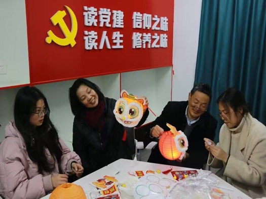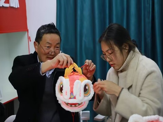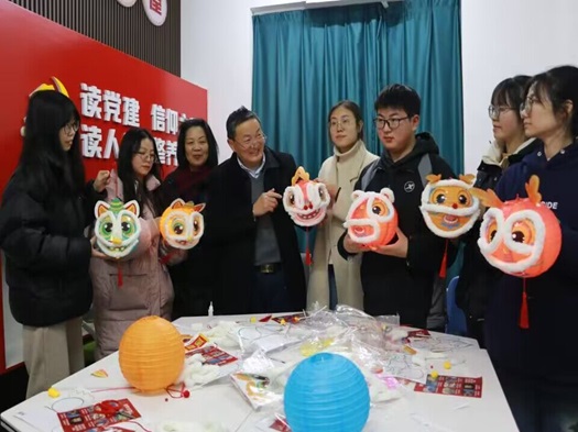 在交流互动环节,雷儒金与社区学生共同制作龙年灯笼,体验中华优秀传统文化氛围,其乐融融。