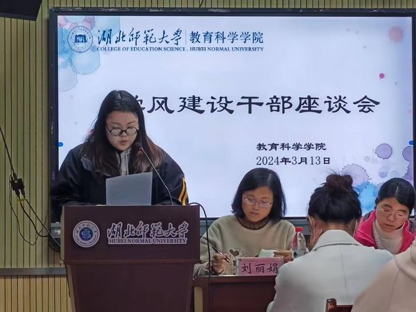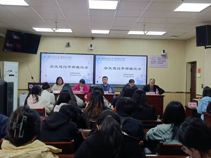 为加强教育科学学院学风建设,推动各项学风建设活动落地、落实、落细,教育科学学院于3月13日中午在教育大楼1316A举办学风建设学生干部座谈会。教育科学学院党委副书记刘广兵,辅导员张琦、秦姗姗、刘丽娟、伊力扎提以及全体学生干部参加了本次会议。会议由辅导员刘丽娟主持。