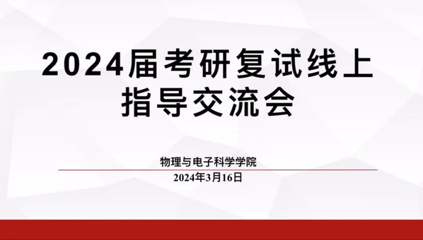 近期,全国硕士研究生入学考试成绩陆续公布,为扎实做好2024届本科毕业生考研复试、调剂指导工作,帮助考研学子精准把握复试和调剂要求,我院于3月16日开展了2024届学生“云上”考研复试指导交流会。参加本次活动的有研究生院吕剑老师、物电学院2023届6名考研成功学生代表和2024届考研学子,活动由学院辅导员吕璐老师主持。
