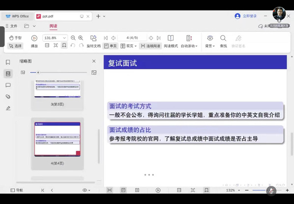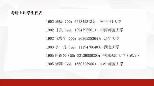 刘庆、甘凯、亢鲁宁、李一凡、唐雨婷、韧翾6位2023届成功考研上岸的学生代表分别围绕专业内容、英语复习、面试礼仪、心理素质以及调剂注意事项等方面进行了针对性分享。学长学姐们的分享不仅让同学们对复试有了更加清晰的认识,也激发了他们的信心和斗志,为接下来的复试打下了坚实的基础。最后,自由提问环节,答疑解惑。
