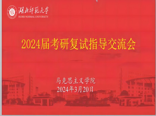 扎实做好2024届本科毕业生考研复试,调剂指导工作,精准助力考研学子顺利上岸,3月20日晚,马克思主义学院开展了2024届学生云上考研复试指导交流会,参加活动的有院长唐兴军、教师汪灿德、马院2023届上岸学生代表及2024届考研学子,会议由辅导员方大鹏主持。