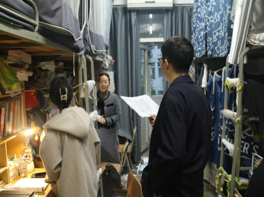 为创建文明宿舍,深入了解学生清明假期返校后的学习和生活情况,进一步营造温馨和谐、积极向上的寝室氛围,4月6日下午,马克思主义学院党委书记程焰、党委副书记彭舟、辅导员郑小蓉和方大鹏,各班班主任、团学主席团成员以及宿舍管理部全体成员在我院学生宿舍开展查寝工作。