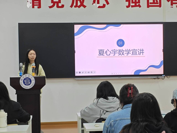 会上,三位优秀学生代表分别从《线性代数》、《高等数学》和《大学英语》三个科目分了自己的学习心得和经验。夏心宇同学强调了笔记的重要性,提醒同学们上课认真听讲并做好学习笔记,她指出数学公式是大部分题目的解题关键,数学学习中,应在平时就将公式等记牢,以便理解并解决题目,给同学们提供了值得借鉴的学习方法。夏书颜同学以自己的亲身经历为例,围绕多做多练、常做错题、吃透知识点等详细讲述了如何打好数学基础,确保能在拿到试卷的基础分之后再冲击难题、杂题,提供了一种学习数学的有效方法。易晓雨同学从日常生活中大多数同学学习英语时遇到的困难展开分析应如何学习英语,并向我们推荐了背单词的软件,分析在阅读长难句时应学会自主断句并学会精简阅读,在有限的时间里极大程度地获取有效信息,她指出英语的学习是一个不断积累的过程,希望自己的建议能帮助到大家并激励同学们努力学习。