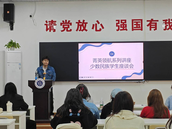 交流互动环节,大家针对自己平时在学习和生活中遇到的各种问题与三位优秀学生代表积极交流。最后,徐科伟老师作总结讲话,他表达了学院对于少数民族学生的关心鼓励同学们要思想上进、勤奋热情、自立自强;秉承院训精神,培养信心,勇于克服生活及学习上的难关。
