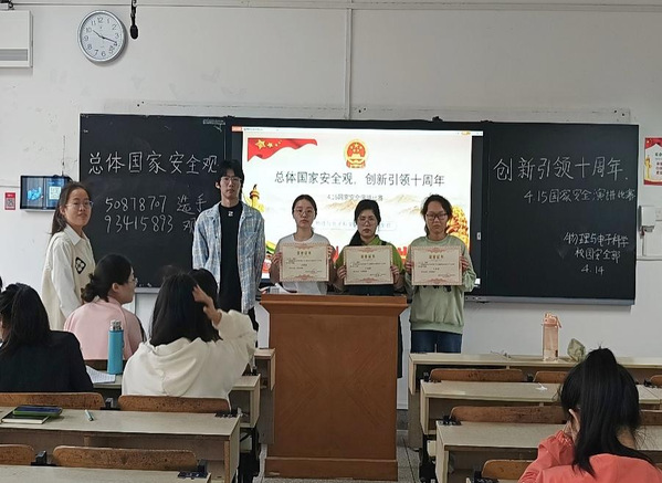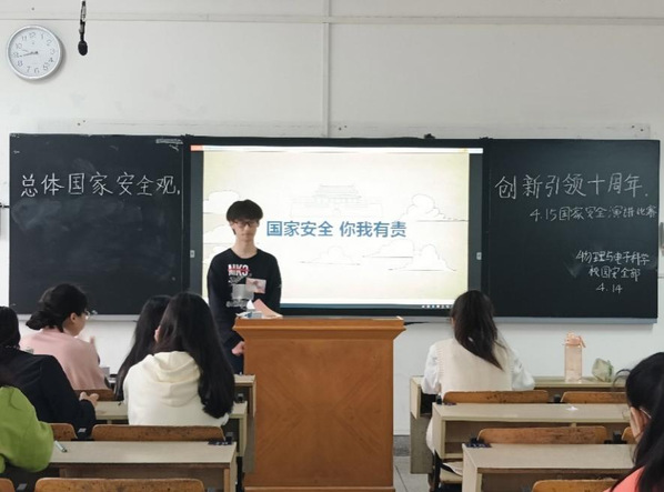 2024年是yl23455永利官网总书记提出总体国家安全观的第10年,今年4月15日也是第九个全民国家安全教育日。国家安全对于国家至关重要,青年一代承载着维护国家安全的重要使命,为培养青年学生的国家安全意识,推动国家安全教育工作在青年学生中深入普及,4月14日上午,物理与电子科学学院校园安全部于教育大楼1102教室举行了以“总体国家安全观,创新引领十周年”为主题的4.15国家安全教育日演讲比赛,校园安全部部长王心如和副部长潘立晨担任活动评委。活动由校园安全部干事陈泽芳主持。