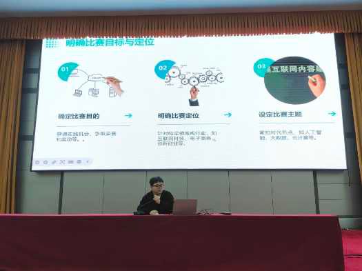 活动伊始,播放中国国际大学生创新大赛宣传视频,视频介绍比赛性质及参与形式。紧接着,黄新望为大会致辞,他回顾了大赛的发展历程、往届情况,讲解了赛道设置、奖项设置、赛程设置,希望同学们积极报名参赛。随后,三位获奖代表分享自己的经验,其中,薛博就明确比赛目标和定位、撰写项目书、考核要求等问题进行了详细讲述;余陈赫对竞赛概述、商业模式、策划书及PPT注意事项作了深入分析;高慧芳则以自身竞赛项目,分享了“青年红色筑梦之旅”赛道参赛经验。最后,大会进行答疑解惑,肖波老师以及三位学长学姐针对同学们的疑问以及在比赛过程中可能遇到的问题,提供专业的解答和建议。