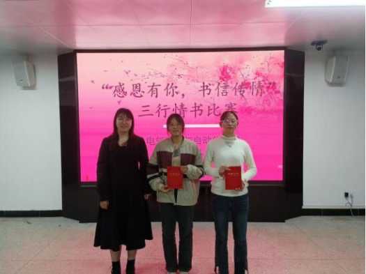 感恩,是一种情感的表达,更是一种珍贵的品质,为深化学生感恩教育,引导学生识恩、知恩、感恩,4月19日晚,电气工程与自动化学院勤工助学部在产教融合中心24341举办“感恩有你,书信传情”三行情书大赛。学院辅导员王昭涵,青年传媒中心主任甘馨,研究生代表李超男、赵芳出席活动。