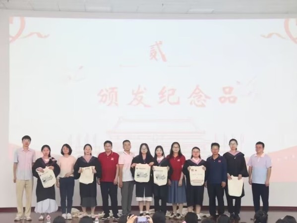 活动在同学们的文艺表演中拉开帷幕,老师们为毕业生颁发纪念品。优秀毕业生代表张艺琴、杨丹丹依次发言,她们满怀眷念与不舍,深情回顾在学校度过的青春岁月,分享交流在校期间的成长收获、未来学习工作的规划愿景,表达了对学院和老师们悉心培养的感激之情。