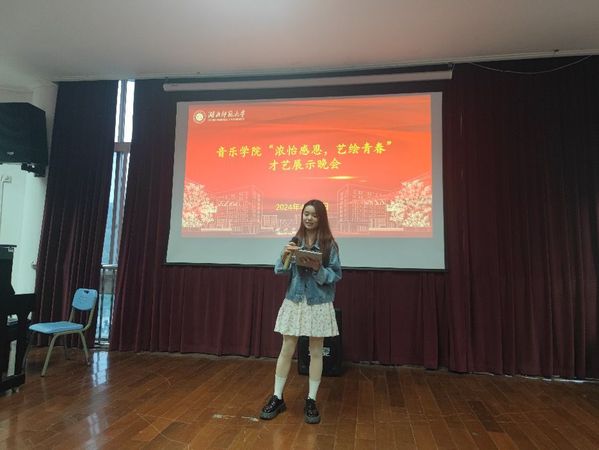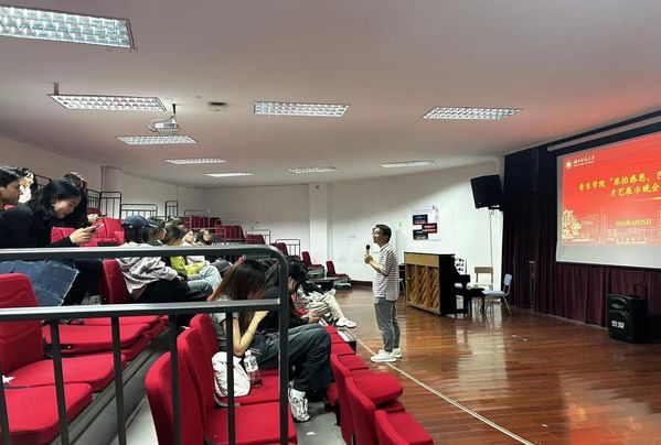 为传递诚信与感恩精神,展现音乐和舞蹈学生的青春风采,在感恩与青春的交织中感受生活的美好与希望,4月25日下午,音乐学院在13316教室举办学院特色活动——“浓怡感恩,艺绘青春”才艺展示晚会,音乐学院辅导员汪佳龙出席本次活动,在场所有观众担任本次活动的大众评审。