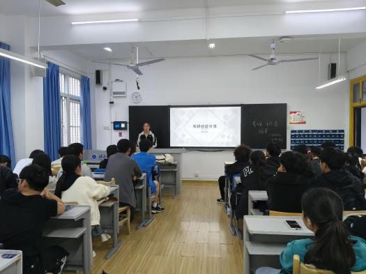 宣讲团成员由2024届考研学生中优秀学生代表组成。主题班会上,各位主讲人结合自身的考研经历,围绕学校与专业选择、初试备考、复试调剂、心态调整、时间规划等方面向大家做了详细的介绍,并就如何高效制定学习计划、如何平衡专业课与公共课复习时间提出建议。同时就考研与就业、考研动机、考研心态、参考书的选择、资料信息的收集、复习时间的安排、复习方法、应试技巧等同学们普遍关心的问题,耐心细致地进行了介绍。