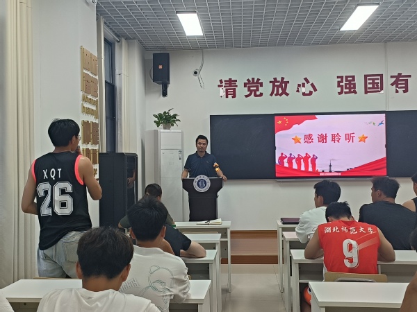 活动伊始,体育学院优秀退役士兵曹晓叶同学为大家分享了她的入伍过程及军营故事,她指出参军不仅可以使身体得到磨炼,还可以锻炼自己的意志品质,丰富自己的人身阅历。随后,辅导员李亮分别从入伍流程、优先优待、经济待遇、军队优惠政策、升学复学、就业创业等几个方面进行讲解,重点介绍了大学生参军入伍在升学、就业、资助补贴等方面的优待政策。最后,与会学生就各自关心的入伍流程和政策进行了现场交流,曹晓叶同学和李亮老师分别对同学们提出的问题进行解答。