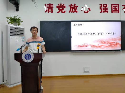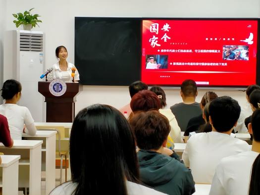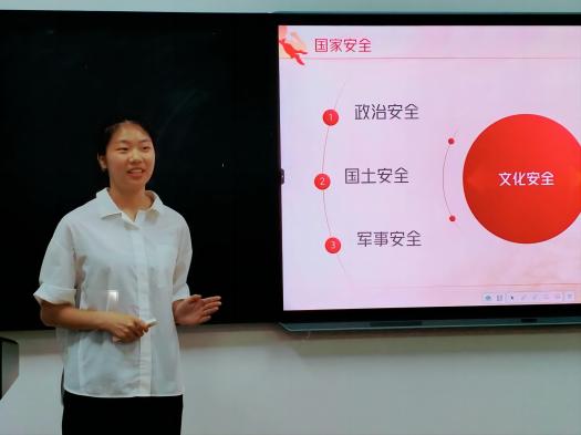 高晨瑶以“维护文化安全,筑牢安全防线”为题展开宣讲,她声情并茂地讲述了身边的文化安全,文化安全的内涵以及当今文化安全面临的威胁,并倡导同学们应树立文化安全意识,厚植文化自信并做好传播,讲好中国故事,形成合力,促进传承创新。她结合个人经历,提倡同学们应当承湖师校训,弘扬湖师精神,将教书育人的使命与国家安全相结合,做国家安全的传承者。