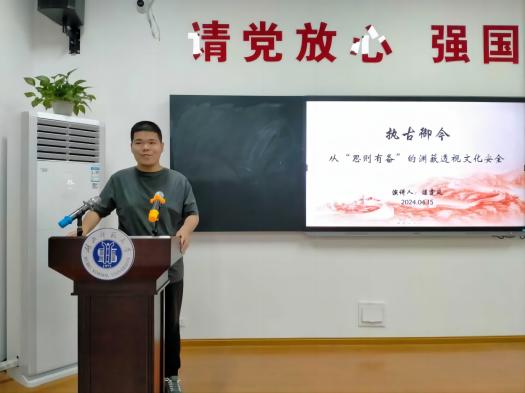 谌霆风进行了主题为“执古御今从‘思则有备’的渊薮透视文化安全”的演讲,他援引古籍《左传》中的“居安思危,思则有备,有备无患”,引人入胜地倡导同学们要坚定文化主体,创新文化表达,毋负文化使命。国安之路漫漫其修远兮,吾辈将上下而求索。