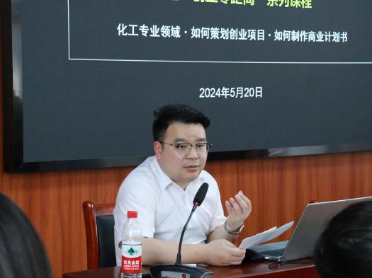 为做好第十届中国国际大学生创新大赛准备工作,准确理解和把握赛事内涵和要求,深入挖掘和培育化学化工学院创新创业项目,提升参赛项目水平,5月20日下午,招生与就业工作处、创新创业学院邀请魔投资本创始合伙人、清江科创董事总经理、国家级产业园区创业导师谭伟为化学化工学院师生作辅导讲座,创新创业学院院长姜少平、副院长王元花,化学化工学院党委副书记吴天真、学院专任教师代表和70余名学生参加培训。培训会由辅导员郭先哲主持。
