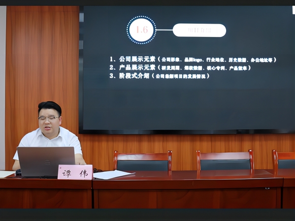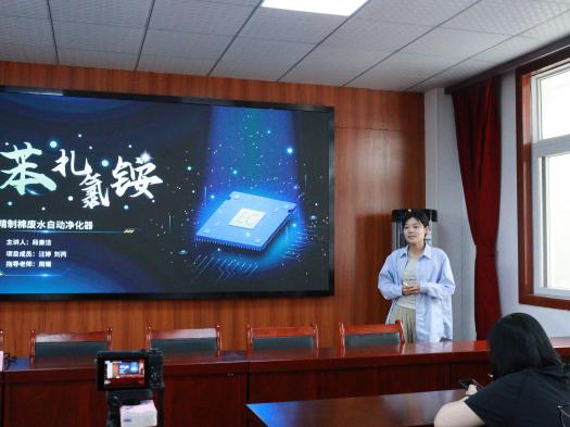 培训会上,“碳”索新生团队和净水先锋团队作为代表向与会人员分享了他们的项目,谭伟老师从项目内容、展示形式等方面提出意见建议。