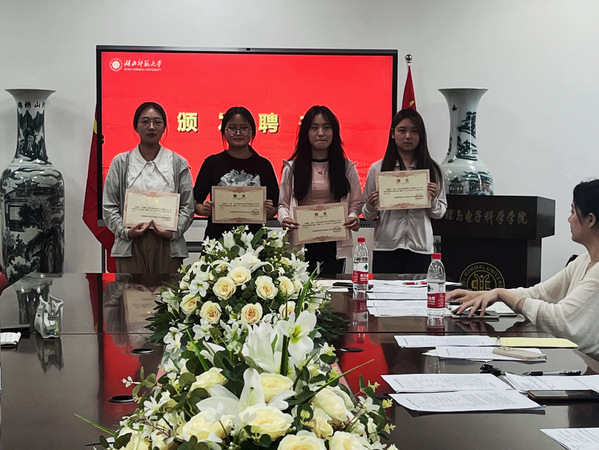 随后,田学泽、吕璐宣读2023-2024学年学生会、自律委员会的学生干部名单,为他们颁发聘任证书,并感谢全体学生干部的付出和奉献。