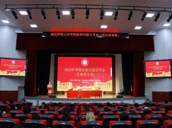 为充分发挥榜样引领作用,助力学生考研升学。5月23日下午,校学生工作部(处)联合音乐学院、体育学院、美术学院、外国语学院联合举办2024年艺体考研暨出国留学经验分享会。校学生工作部副部长熊英、辅导员发展研究中心负责人王浩、考研优秀学子代表及在校生代表参加活动。