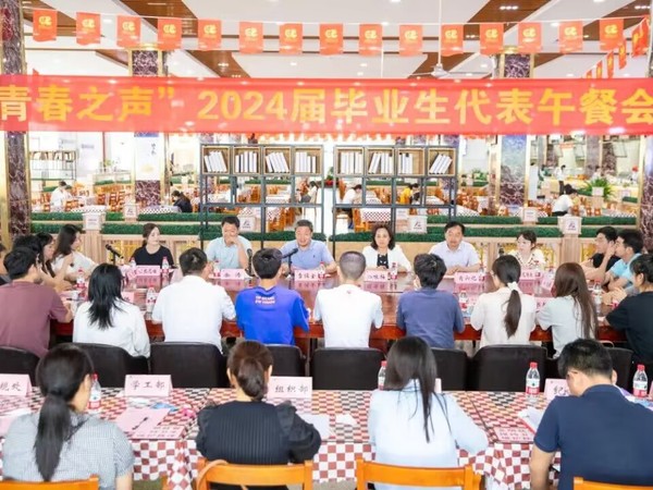 5月30日中午,全体在校校领导与即将毕业的2024届学生代表在一站式学生社区大学生活动中心二楼共进午餐、交流座谈。党政办、纪委、组织部、宣传部、学工部、人武部、发规与学科处、教务处、研究生院、国资处、招就处、保卫部、团委、图书馆、后勤管理中心、校友工作处、信管处等单位相关负责人一同参加。午餐会由副校长余涛主持。