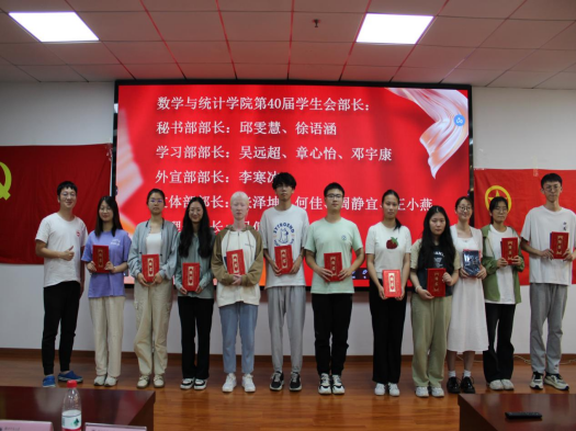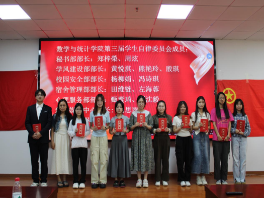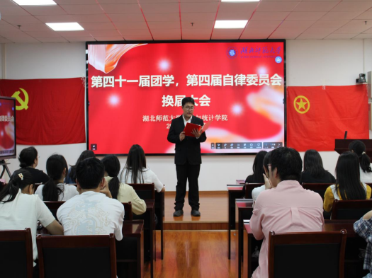 为了进一步加强学生组织建设,提高我院团学自律会的凝聚力,数学与统计学院团学自律会于5月30日下午在信息大楼10603召开了数学与统计学院第四十一届团学和第四届自律委员会换届大会。出席本次会议的领导老师有数统学院党委副书记袁曼,辅导员何金燕、屈媛媛、杨宇森、苏梦月以及全体学生干部,会议由团委学生副书记程博主持。
