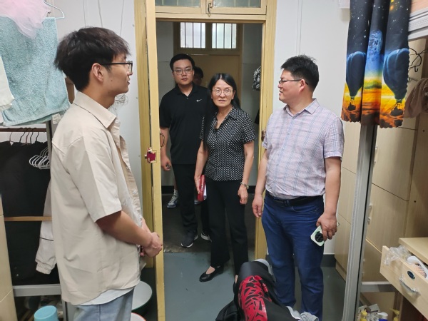 为了解学生返校情况,推动营造良好的生活环境和学习氛围,6月10日晚,电气工程与自动化学院组织寝室走访活动。学院党委书记丁桂兰,院长詹习生,党委副书记金高辉,副院长杨青胜、韩涛,以及全体班主任、辅导员深入学生寝室开展查寝活动。