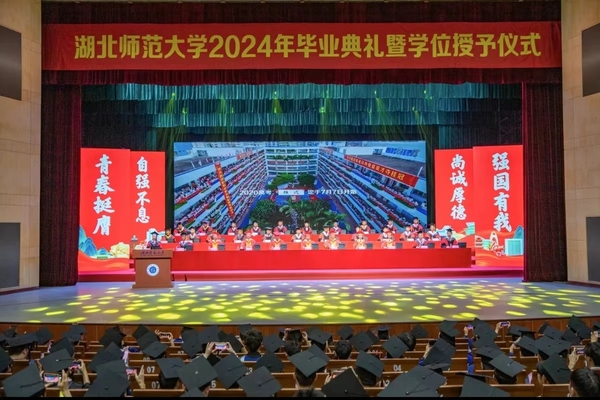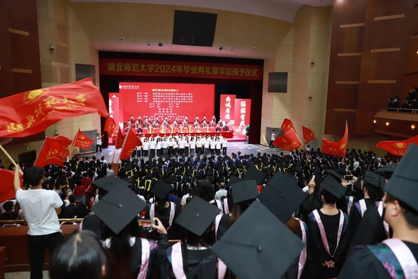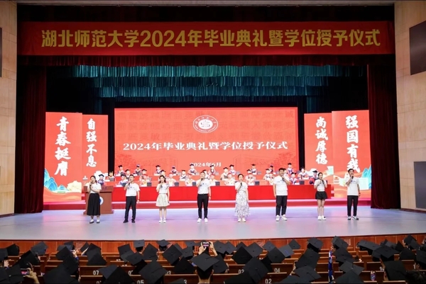 青春逐梦,扬帆启程。6月13日上午,我校2024年毕业典礼暨学位授予仪式在“水上莲花”湖师大剧院举行。全体在校校领导出席,校学位评定委员会委员,中层正职领导干部,劲牌公益慈善基金会负责人,各学院分管学生工作负责人、辅导员,毕业班班主任,家长代表,校友代表以及2024届毕业生代表参加典礼。典礼由副校长余涛主持。