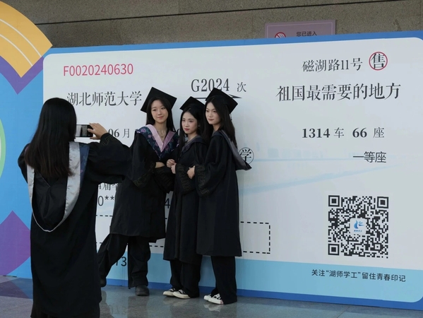 典礼在全场师生合唱校歌《我们是光荣的湖师人》中圆满结束。典礼上,学校还播放了专属于2024届毕业生成长记忆的纪录片《期许》,一幕幕曾经学习生活的景象又再现眼前。校园里,毕业生与老师、家长、朋友在校园标志性建筑和多个精心布置的打卡点前合影留念,记录毕业的美好与快乐。