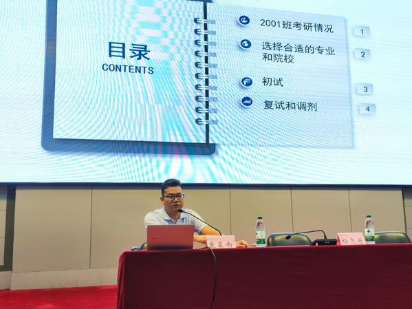 大会伊始,刘广兵对同学们的到来表示热烈欢迎,并强调了合理规划职业发展的重要性,要明确以后的努力方向。随后,鹿星南老师作了关于考研的相关指导。最后,杨志丹作总结讲话,在讲话中指出从当前就业形势、考研趋势以及实习机会等方面进行了深入分析,鼓励学生们明确方向,树立自信,把握机遇。