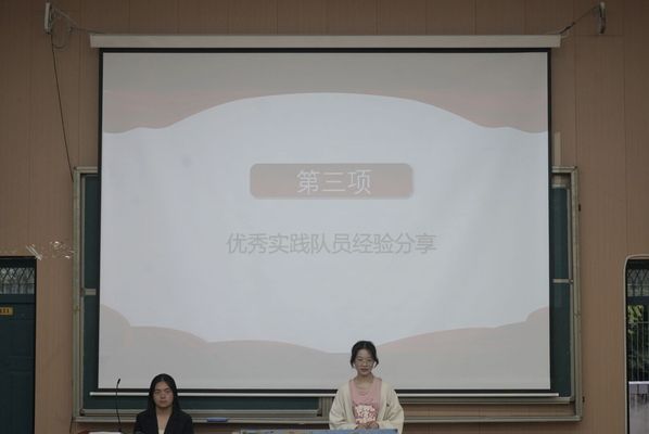 接着,王铭瑶同学从项目申报、活动开展、宣传总结等方面分享了自己的暑调经历,为其他队员提供了宝贵的经验和启示。各实践队队长也依次上台,对各自团队进行了介绍,展示了团队特色和目标。