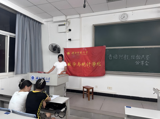 “语”你同行推普实践队的余佳佳分别从走进乡村学校、走进农村基层、走进乡镇工厂、走进城郊社区、走进养老院这五个方面来和大家介绍推普活动内容。“语”你同行推普实践队以青春之力助推黄石乃至全国各地乡村的普通话推广,展现了湖师学子为中国式现代化挺膺担当的拳拳之心与奋发作为。