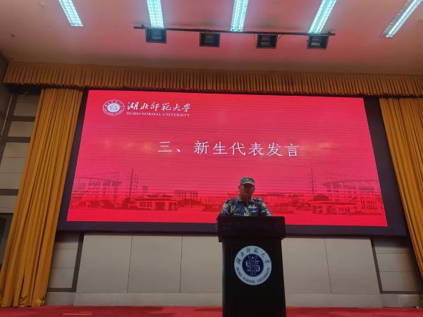 接着,2402班仲天乐同学作为新生代表上台发言。他表达了对大学生活的期待和憧憬,并表示将带领全班同学共同努力,为历史文化学院的发展贡献自己的力量。