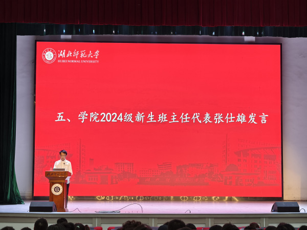 张仕雄作为新生班主任代表进行发言。他对新生们提出三点期望,一是积极自审,通过自我反思来不断调整和完善自我,明确个人目标和方向;二是端正品性,他指出,良好的道德品性是成功的基石,它不仅能帮助新生们在学术上取得成就,更能在未来的职业生涯和社会生活中赢得尊重和信任;三是脚踏实地,专注于当前的学习和生活,一步一个脚印地积累知识和经验。