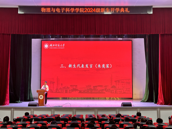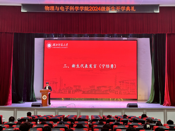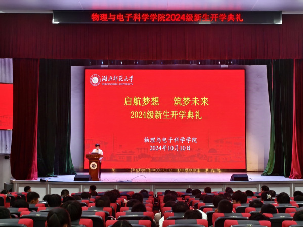 10月10日下午,物理与电子科学学院成功举行2024级新生开学典礼。学院党委书记孙丹娟、副院长单传家,学院辅导员、全体新生班主任,学院2024级全体本科、研究生新生参加。15届校友叶军立莅临现场。典礼由学院党委副书记刘雅主持。