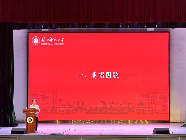 开学典礼在雄壮的国歌声中拉开帷幕。