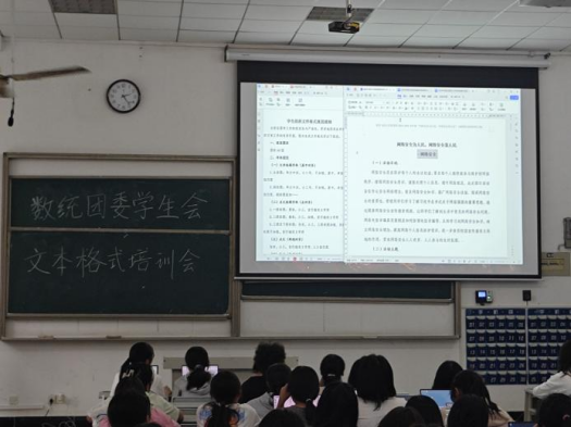 为了提升工作效率和文件处理的专业性,数学与统计学院团委和学生会于10月13日在科技大楼成功举办学生干部文件格式培训会。本次培训会由贾英宝、张飘尹、王晨熙和刘佳诚担任主讲,学院团委和学生会全体学生干部参加培训。